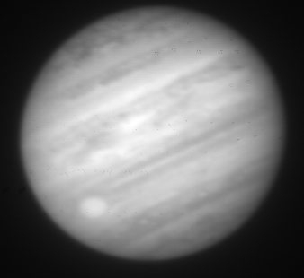 1.58-micron observation of Jupiter taken by the staff of NASA's Infrared Telescope Facility (IRTF) using the guide camera of the SpeX facility infrared spectrometer as a part of a program to characterize atmospheric variability in Jupiter to support the Juno mission.