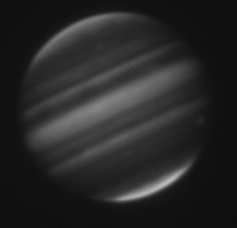 2.16-micron observation of Jupiter taken by the staff of NASA's Infrared Telescope Facility (IRTF) using the guide camera of the SpeX facility infrared spectrometer as a part of a program to characterize atmospheric variability in Jupiter to support the Juno mission.