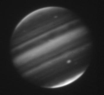 2.16-micron observation of Jupiter taken by the staff of NASA's Infrared Telescope Facility (IRTF) using the guide camera of the SpeX facility infrared spectrometer as a part of a program to characterize atmospheric variability in Jupiter to support the Juno mission.