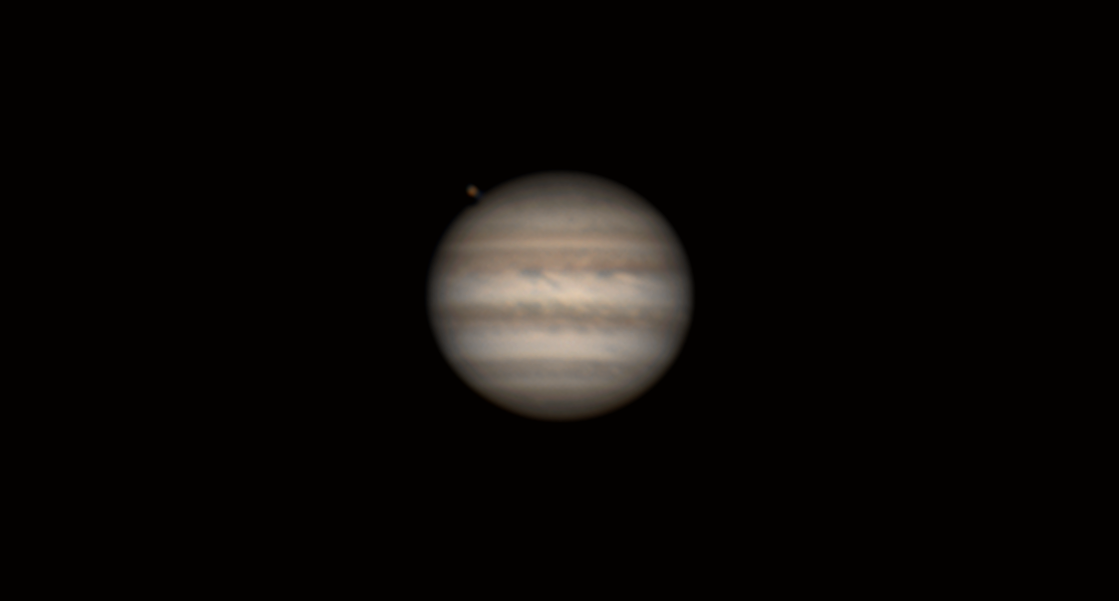 Jupiter with Ganimede and a part of his shadow on the edge of Jupiter