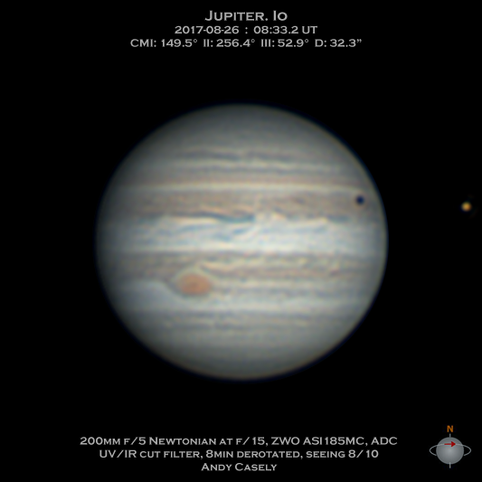 200mm Newtonian, ASI185MC, 8min derotated in WinJupos