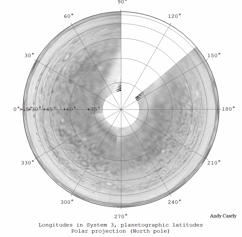 North polar map in IR, excellent conditions, from four frames: 08:50, 09:41, 11:50 & 13:39 UT