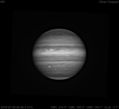 Despite the breezy weather prohibiting the use of the CGEM DX and C14 for the second night straight, tonight was another good summer night for planetary imaging. Notes: The SEBs is dark. Oval BA and the STB Ghost are rising together. The South Polar Red Spot stands out in the south polar regions.