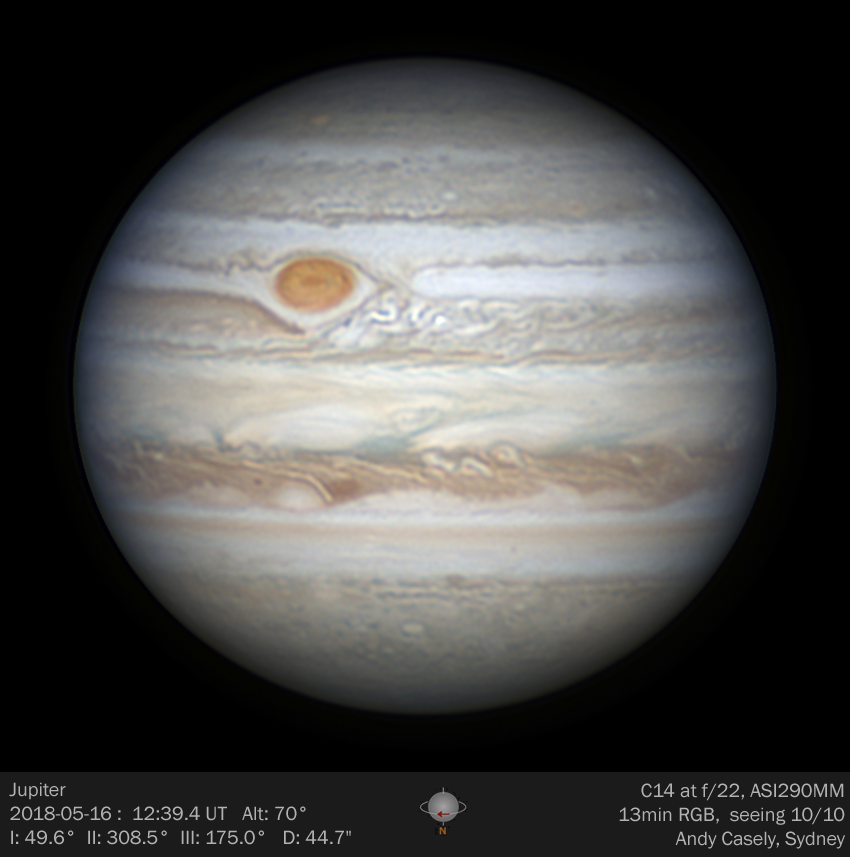 Excellent seeing, 13min RGB derotated in WinJupos