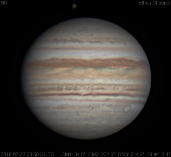 Another amazing summer night of imaging with the AVX/C8. Notes: The North Temperate Belt is faintly orange. White Oval Z is rising. The Equatorial Zone is orange with the exception of the southern edge. The Great Red Spot, on the western limb, is also rising. Oval BA is approaching the western limb. Callisto is passing by. It will resume transits and occultations in November.