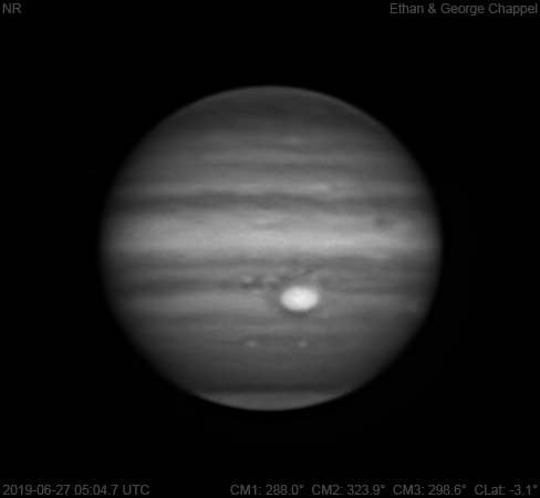 Seeing remained good during the CH4 capture. Clouds started coming in from the south near the end of the capture, causing me to rush for Saturn before it was too late to capture it. Notes: White Oval Z is east of the central meridian. A dark hot spot in the Equatorial Zone is setting. The Great Red Spot is just past the central meridian.