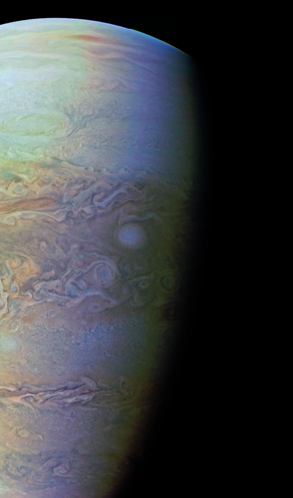 JunoCam Perijove 5 ImageSet898 POI's: String of pearls, Between the Pearls, An Interesting Band Point. Created using RawTherapee in conjunction with Adobe Photoshop.