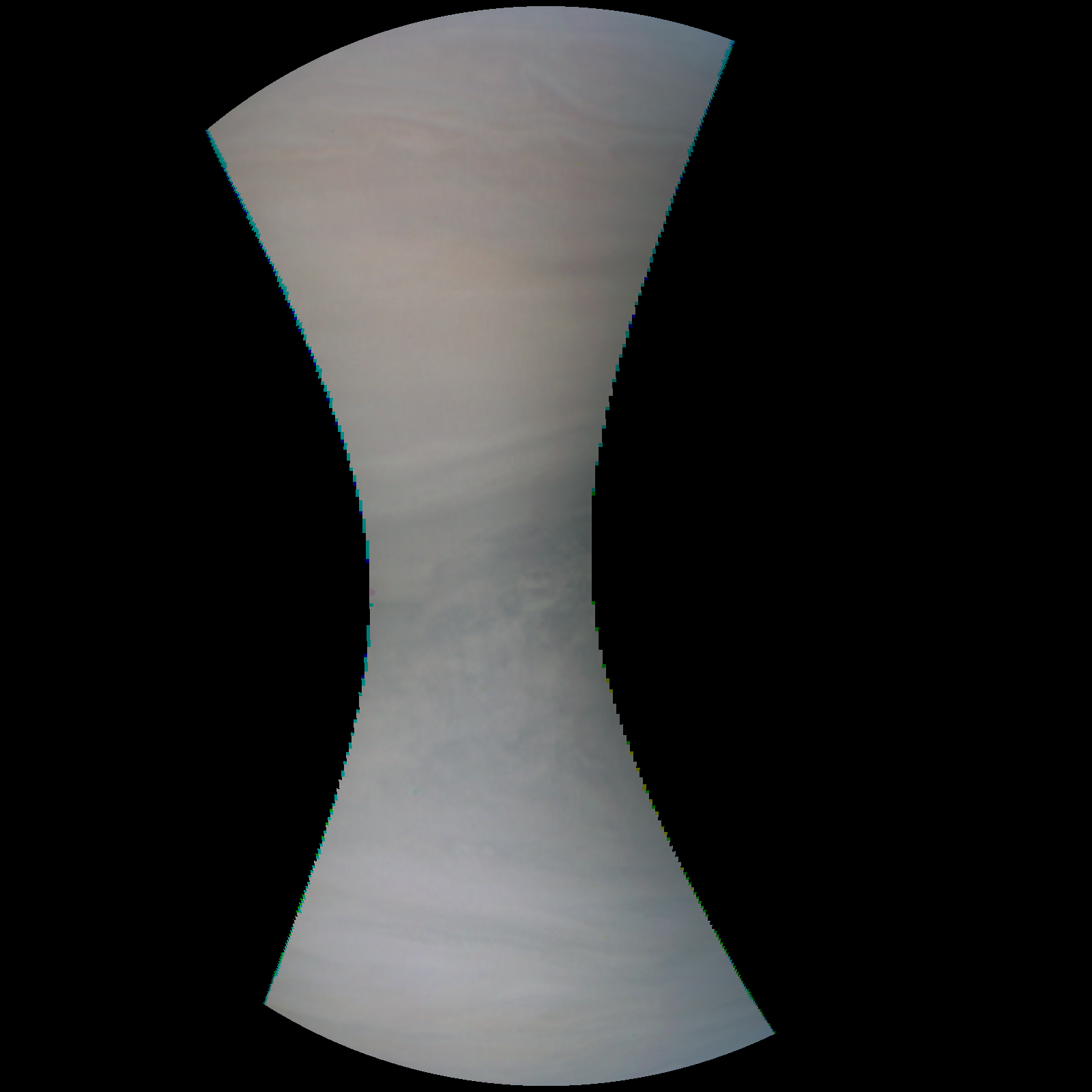 Junocam pixels are 12 bits deep from the camera but are converted to 8 bits inside the instrument using a lossless "companding" table, a process similar to gamma correction, to reduce their size. All Junocam products on the missionjuno website are in this 8-bit form as received on Earth. Scientific users interested in radiometric analysis should use the "RDR" data products archived with the Planetary Data System, which have been converted back to a linear 12-bit scale.