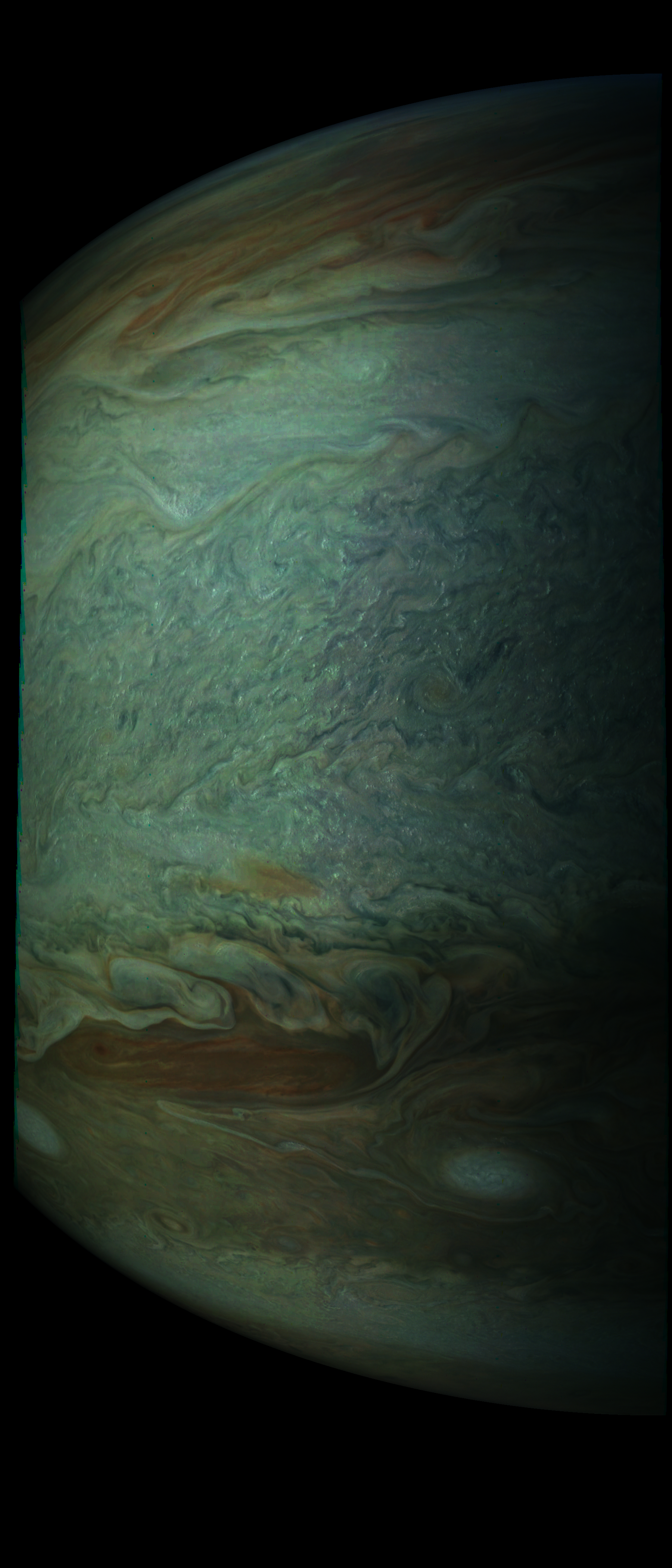 The image is rendered directly from the raw image. Resolution is 30 pixels per degree in a spherical coordinate system, as seen from JunoCam at image stop time.