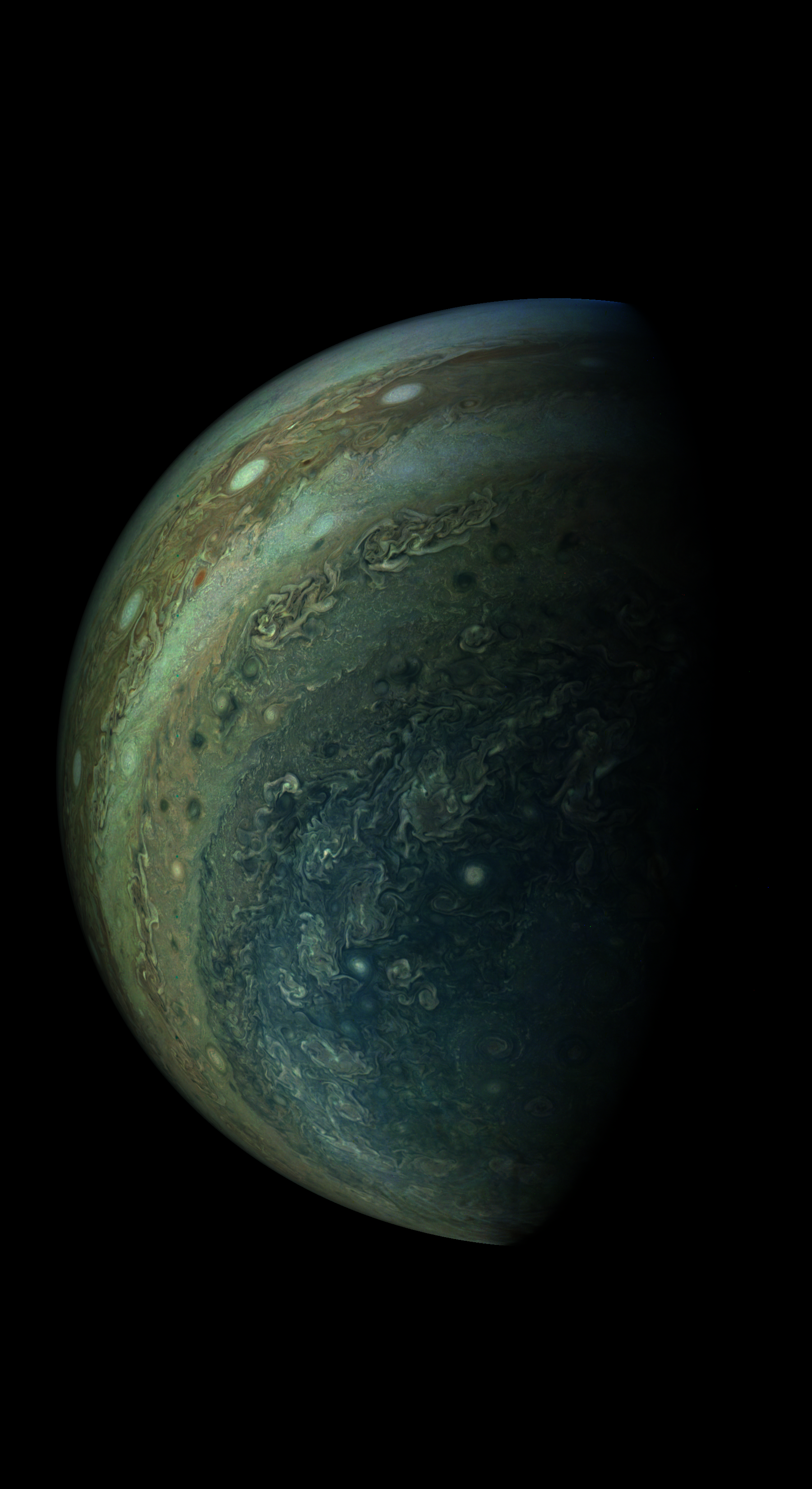 The image is rendered directly from the raw image. Resolution is 30 pixels per degree in a spherical coordinate system, as seen from JunoCam at image stop time.