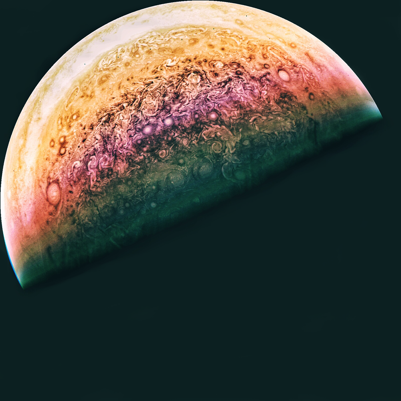 Combined and processed RGB image of Jupiter's south pole