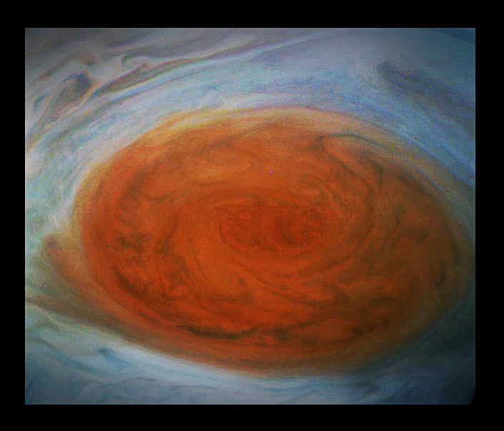 JUNO image of the Great Red Spot processed to bring out detail and structure