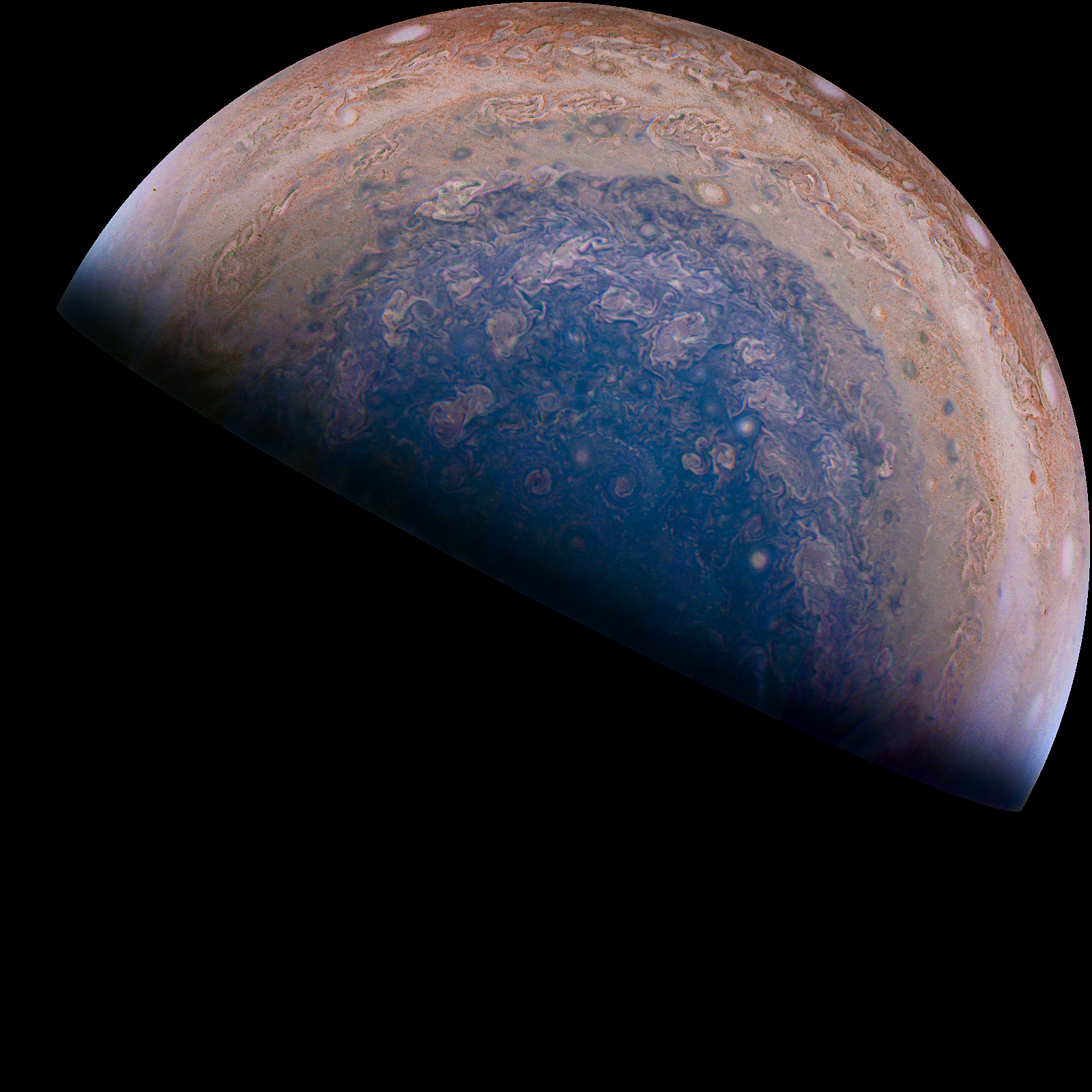 Carefully enhaced image form Jupiter`s Poles