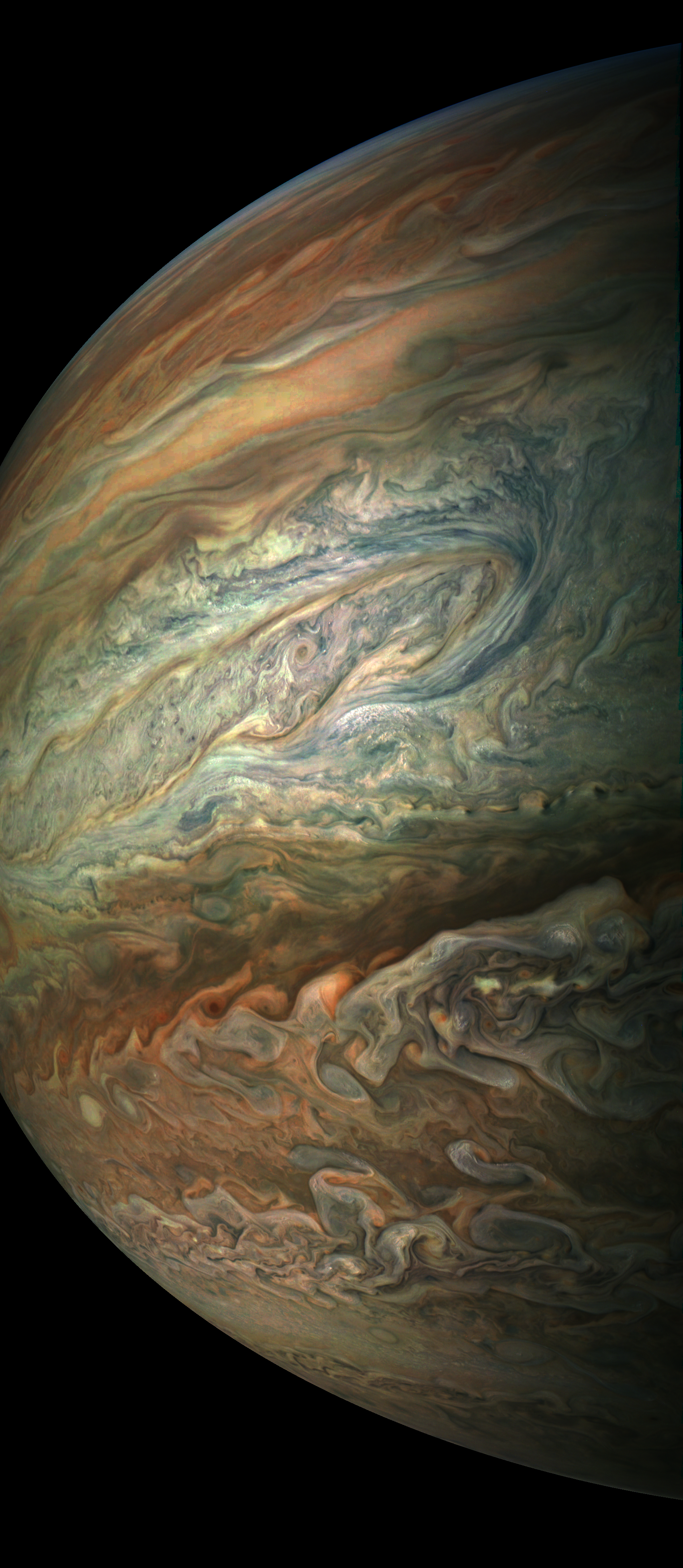 This image is derived directly from the raw image consisting of framelets taken while JunoCam was rotating together with Juno.