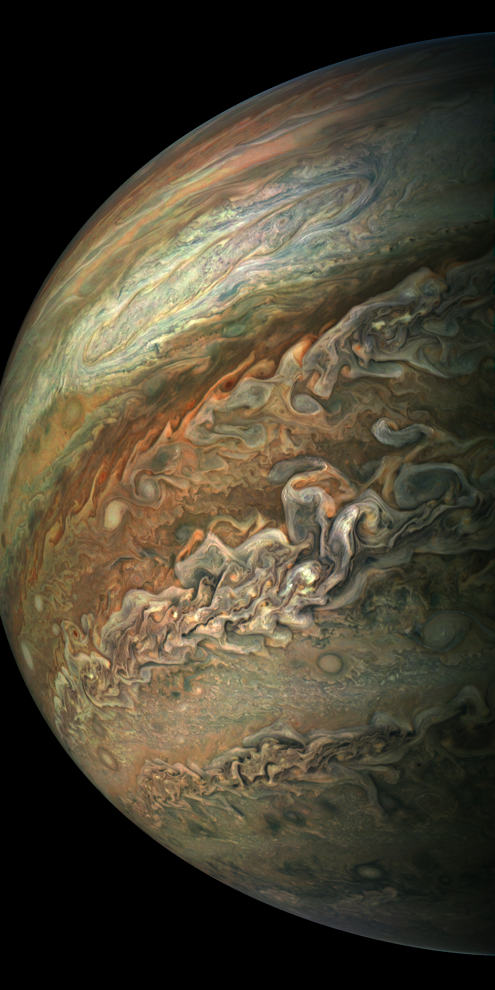 This image is derived directly from the raw image consisting of framelets taken while JunoCam was rotating together with Juno.