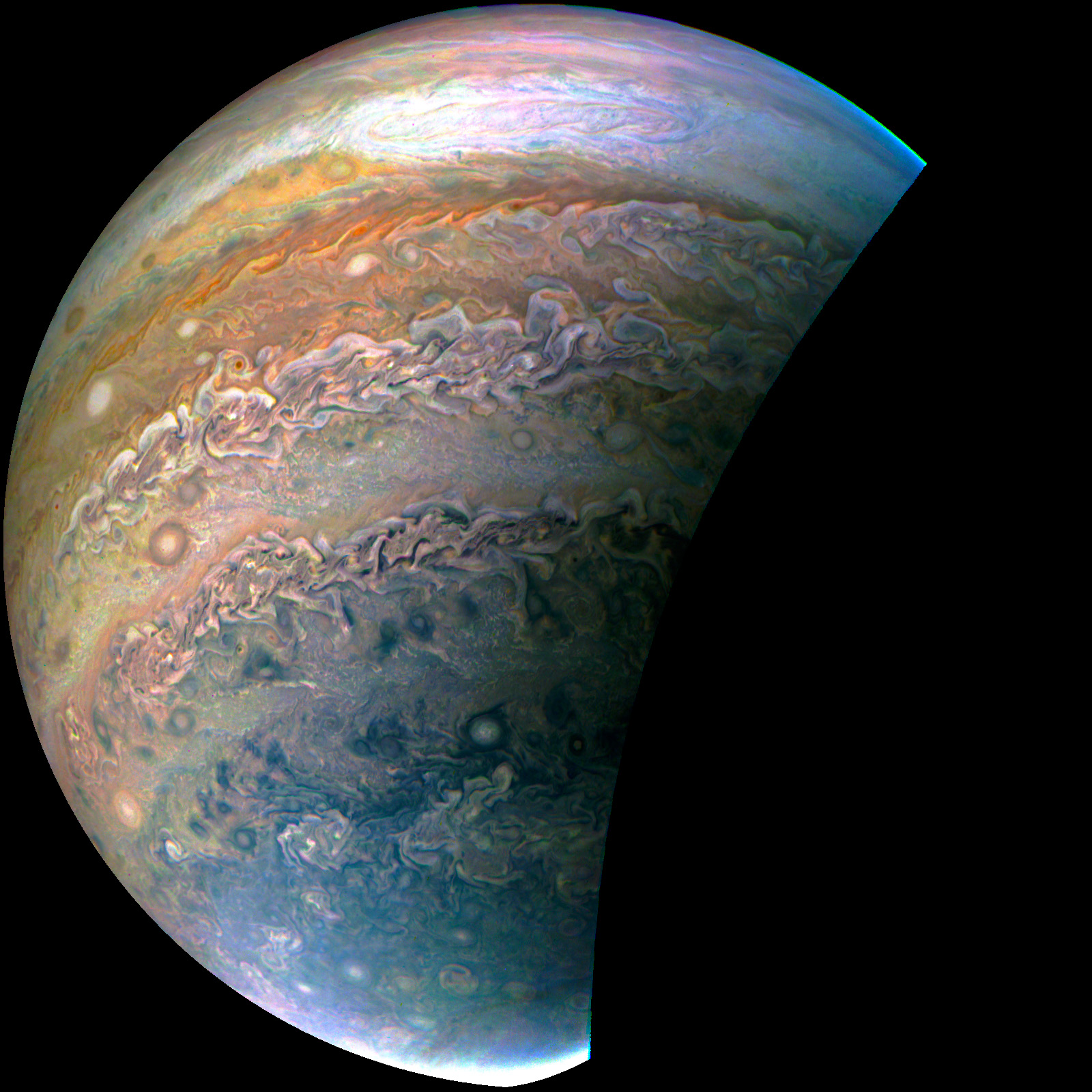 The Renslow and Hurricane Rachel picture of Juno, with colors, brightness/saturation tweaked to bring out the details and more visibility.