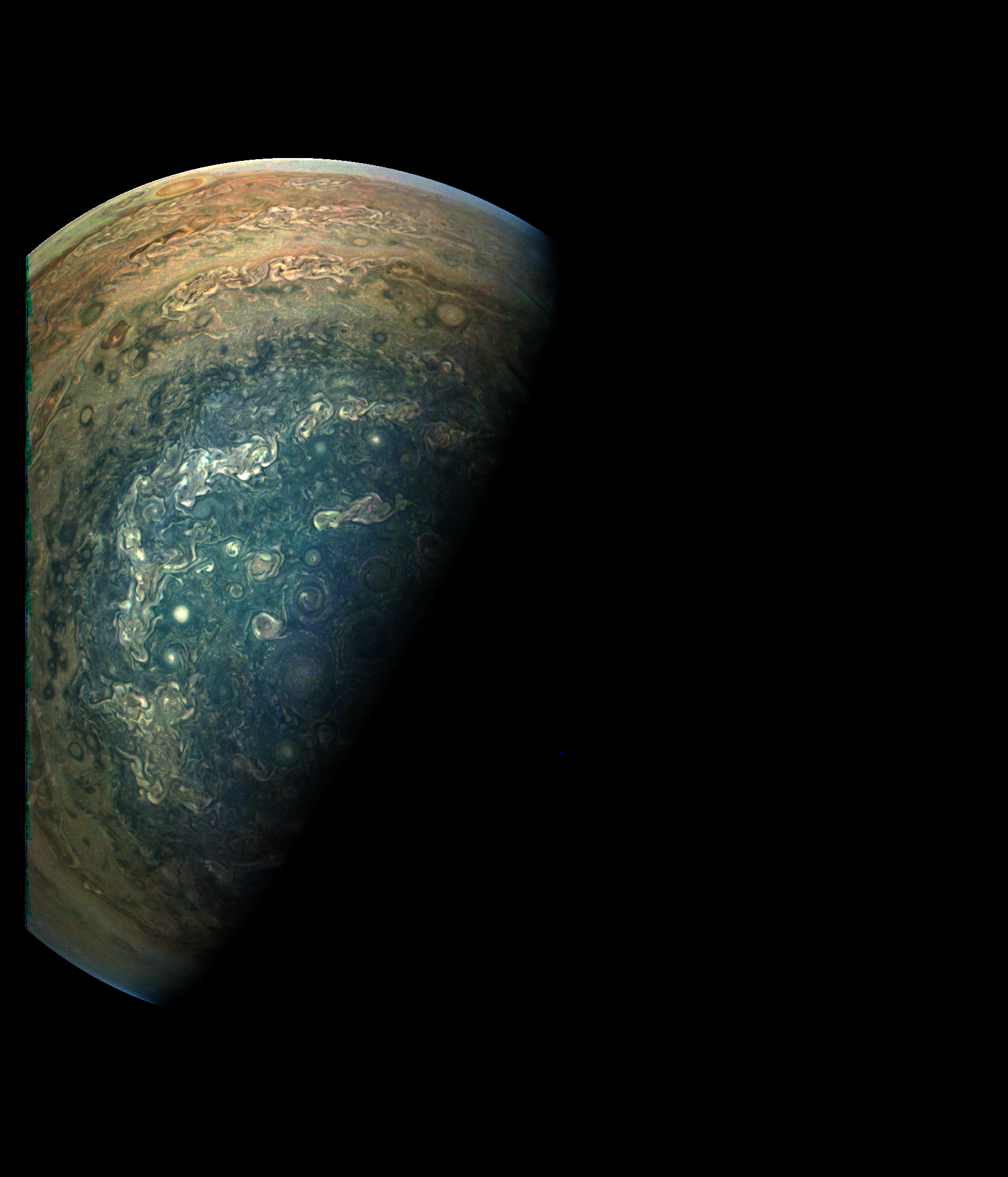 This image is reconstructed from JunoCam data taken during Juno's Perijove-09.