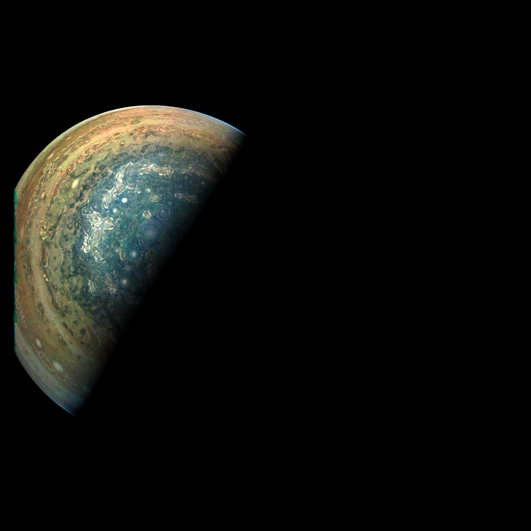 This image is reconstructed from JunoCam data taken during Juno's Perijove-09.