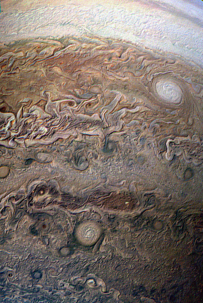 From Perijove 9 a moderately processed image of the southern hemisphere.