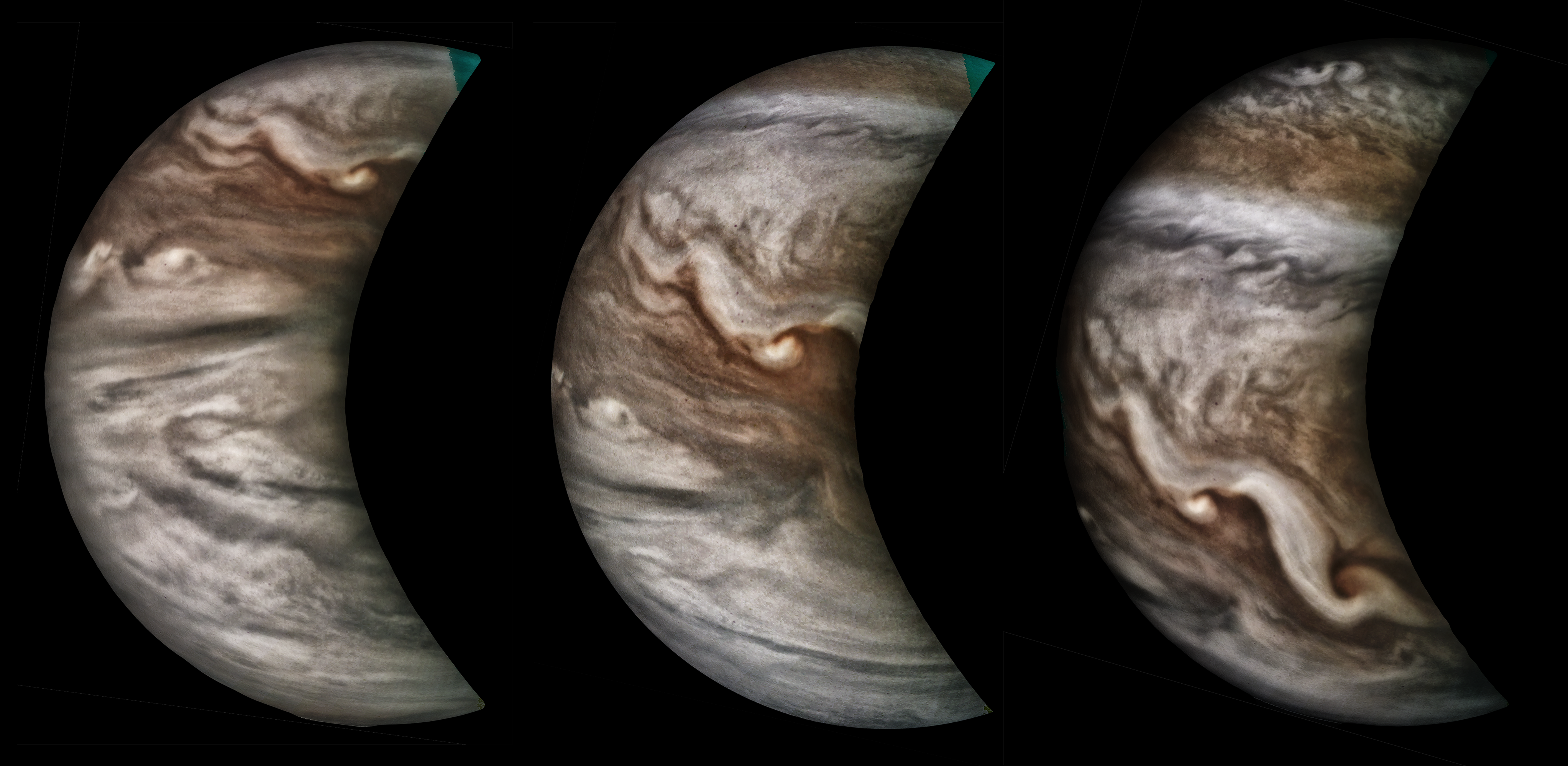 A special note about the Earth Flyby mission phase images: these were acquired in 2013 when Juno flew past Earth. Examples of processed images are shown; most contributions are from amateurs.