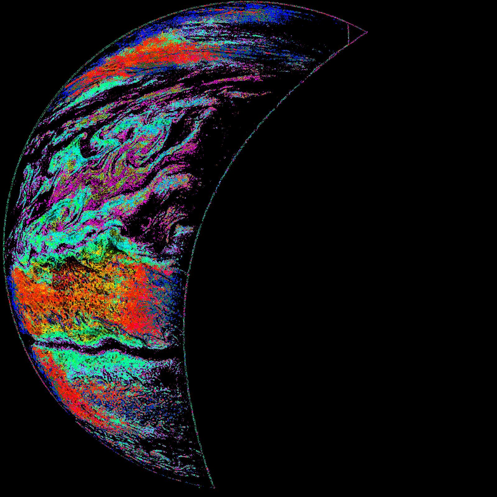 Junocam pixels are 12 bits deep from the camera but are converted to 8 bits inside the instrument using a lossless "companding" table, a process similar to gamma correction, to reduce their size. All Junocam products on the missionjuno website are in this 8-bit form as received on Earth. Scientific users interested in radiometric analysis should use the "RDR" data products archived with the Planetary Data System, which have been converted back to a linear 12-bit scale.