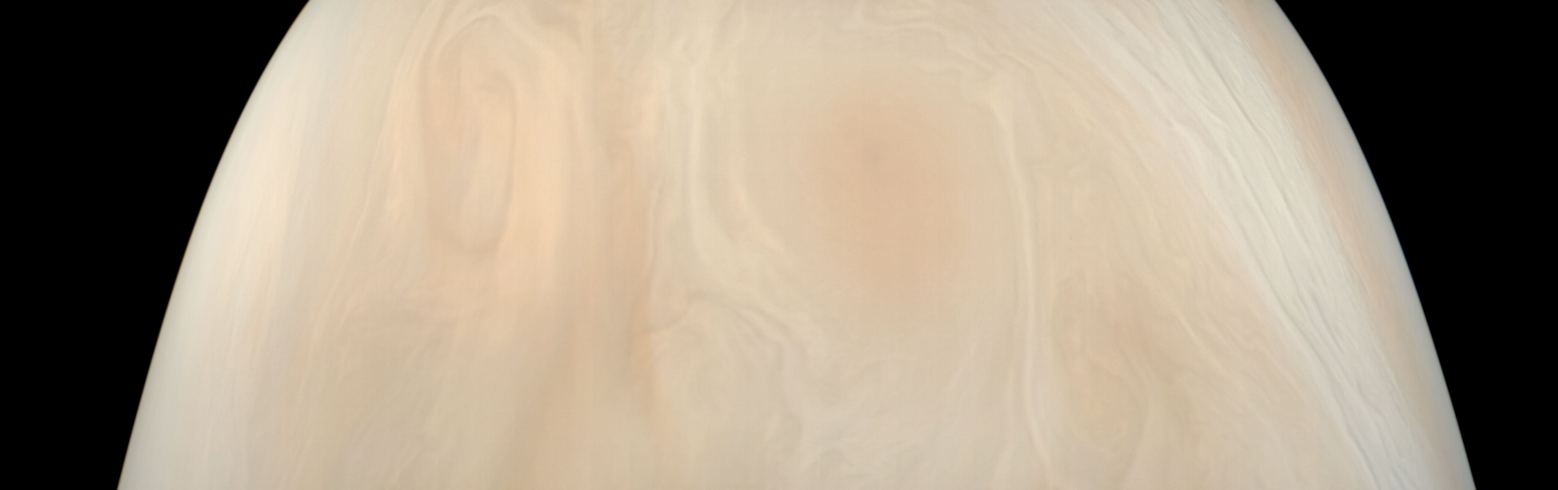 Two large cyclones in the North Equatorial Belt imaged by JunoCam at closest approach to Jupiter. This image has been moderately contrast enhanced to show cloud features.