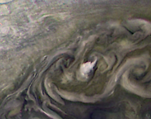 Junocam pixels are 12 bits deep from the camera but are converted to 8 bits inside the instrument using a lossless "companding" table, a process similar to gamma correction, to reduce their size. All Junocam products on the missionjuno website are in this 8-bit form as received on Earth. Scientific users interested in radiometric analysis should use the "RDR" data products archived with the Planetary Data System, which have been converted back to a linear 12-bit scale.
