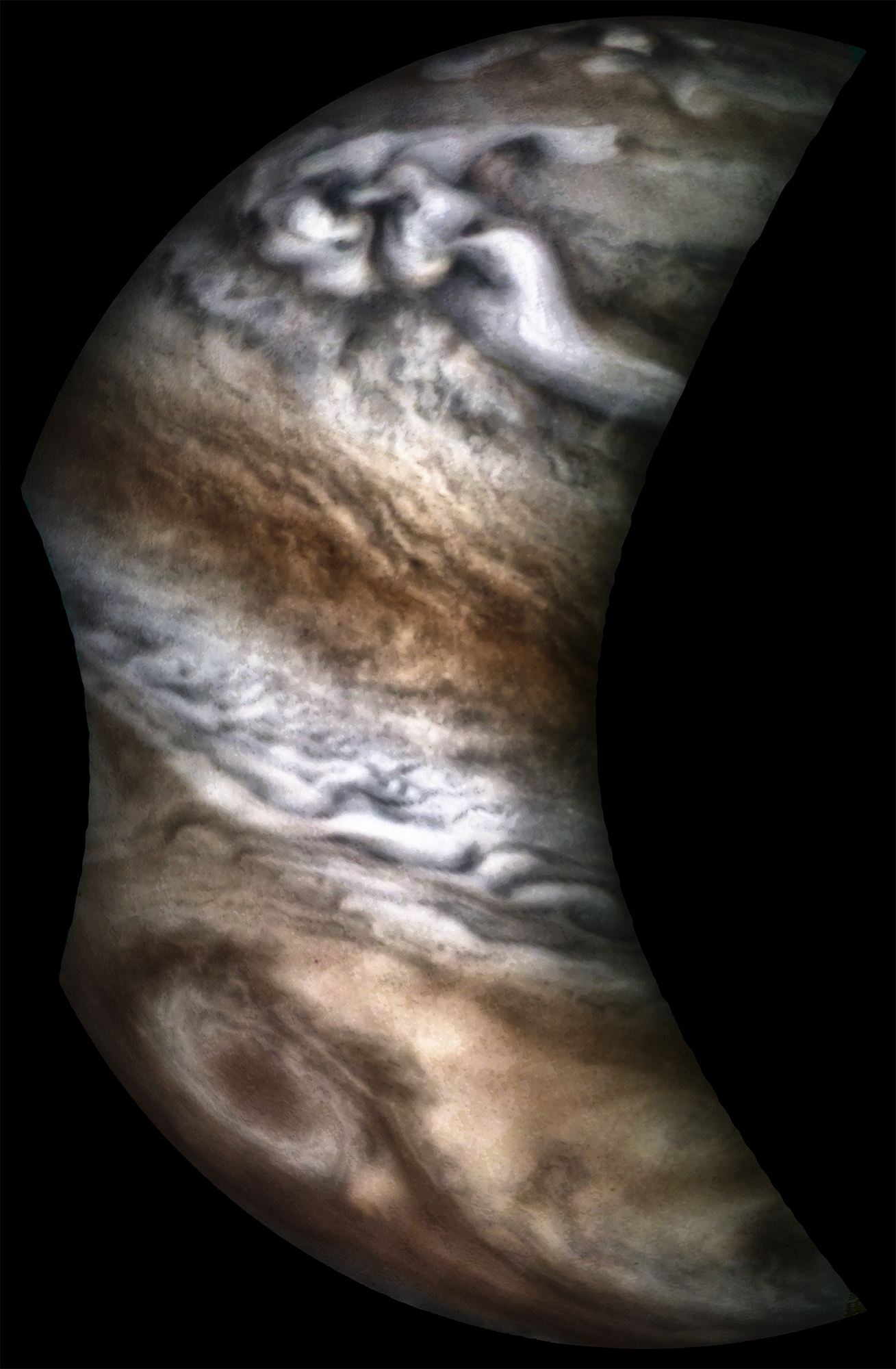 The North Temperate Belt region on the Perijove 13 pass of the Juno Mission to Jupiter.