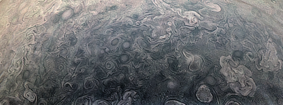 Junocam pixels are 12 bits deep from the camera but are converted to 8 bits inside the instrument using a lossless "companding" table, a process similar to gamma correction, to reduce their size. All Junocam products on the missionjuno website are in this 8-bit form as received on Earth. Scientific users interested in radiometric analysis should use the "RDR" data products archived with the Planetary Data System, which have been converted back to a linear 12-bit scale.