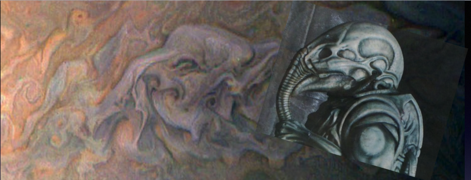 Likeness of an Engineer (Alien films) in the clouds of Jupiter caught be Juno December 11, 2016.