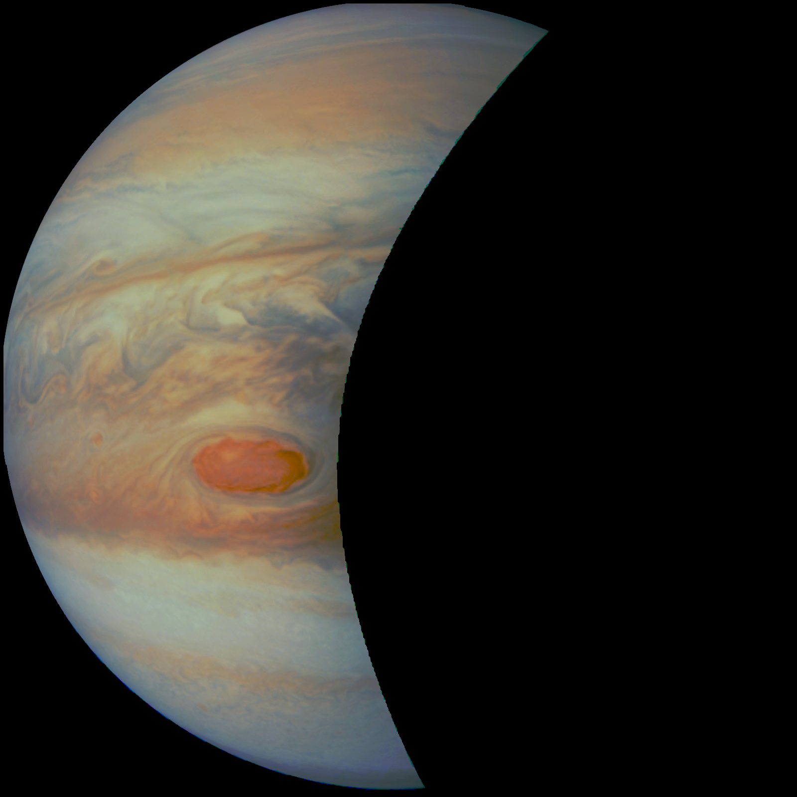 Junocam pixels are 12 bits deep from the camera but are converted to 8 bits inside the instrument using a lossless "companding" table, a process similar to gamma correction, to reduce their size. All Junocam products on the missionjuno website are in this 8-bit form as received on Earth. Scientific users interested in radiometric analysis should use the "RDR" data products archived with the Planetary Data System, which have been converted back to a linear 12-bit scale.