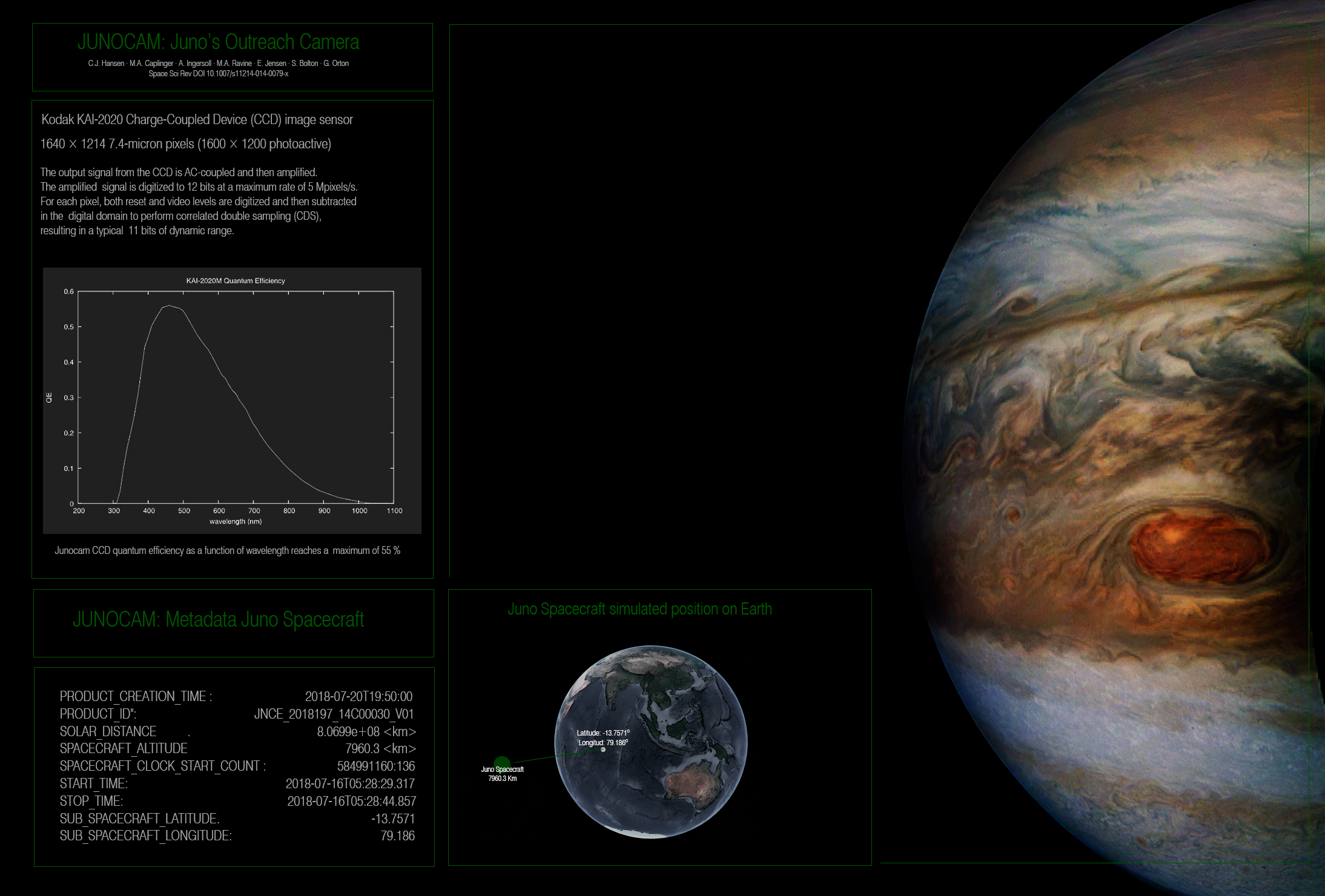 A special note about the Earth Flyby mission phase images: these were acquired in 2013 when Juno flew past Earth. Examples of processed images are shown; most contributions are from amateurs.
