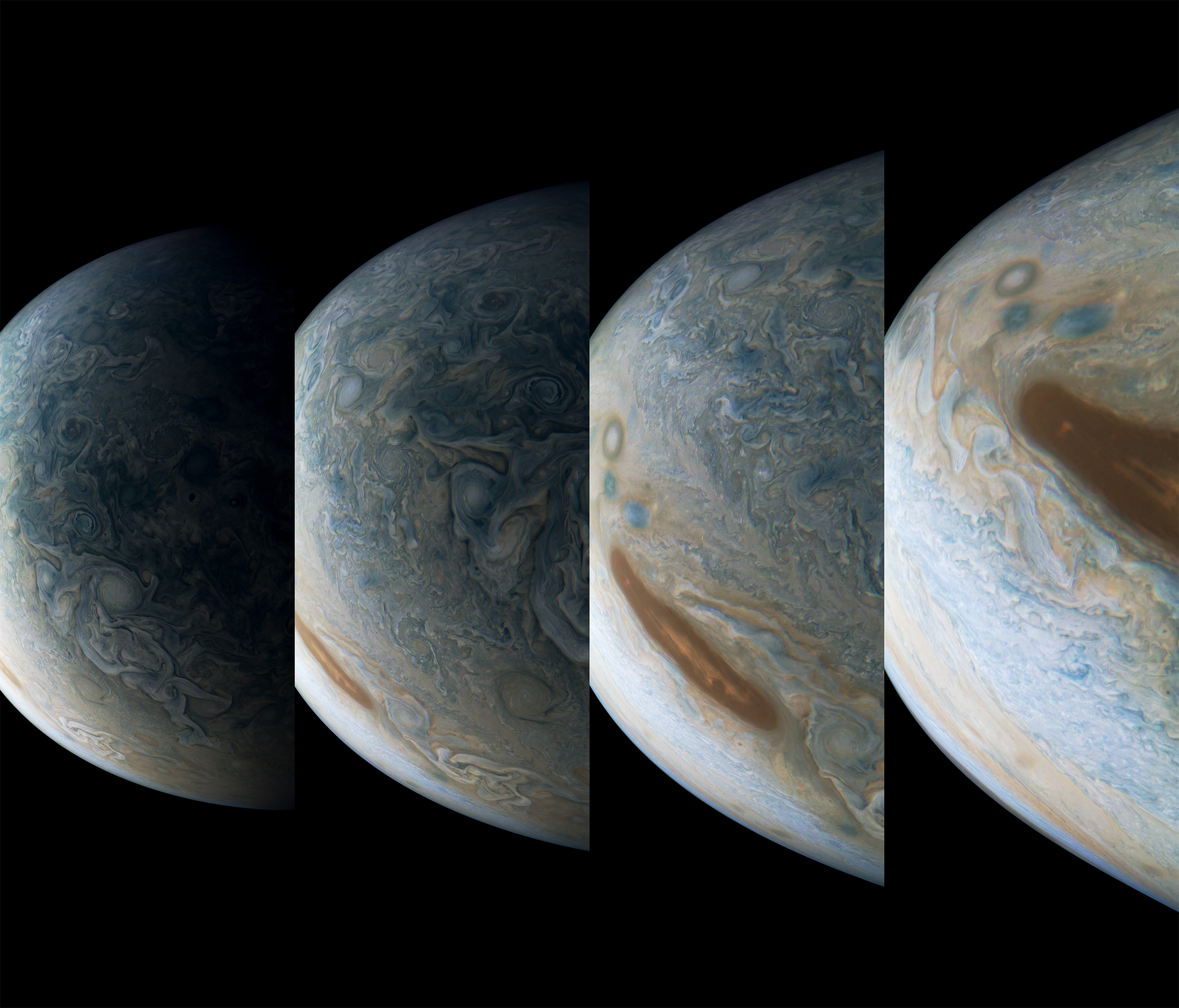 The JunoCam images are identified by a small spacecraft icon. You will see both raw and processed versions of the images as they become available. The JunoCam movie posts have too many images to post individually, so we are making them available for download in batches as zip files.