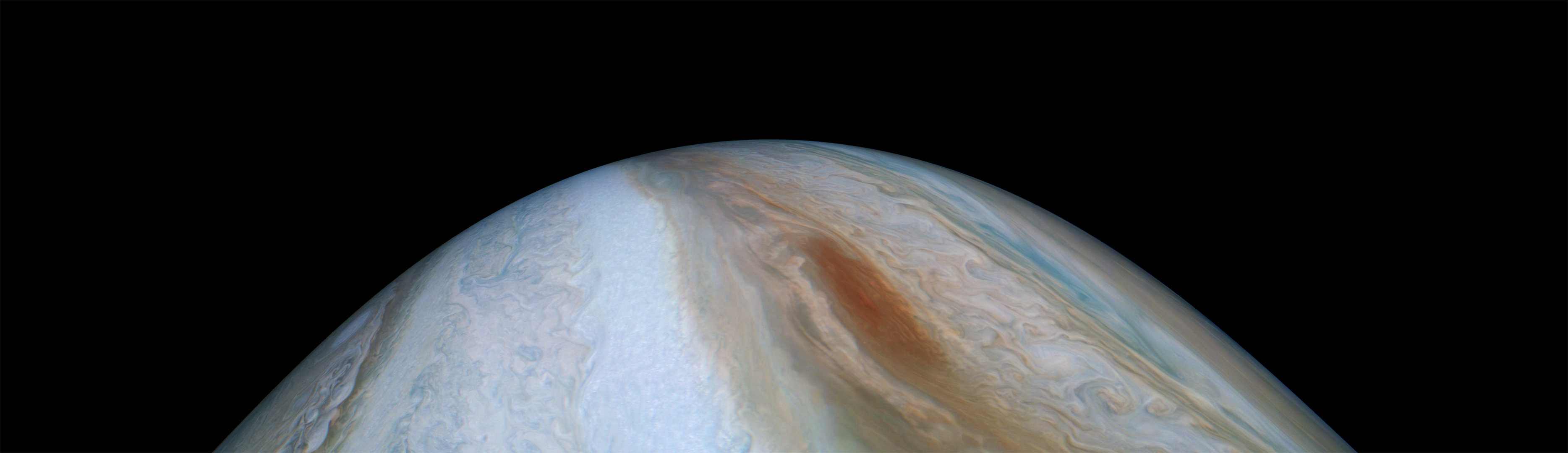 Junocam pixels are 12 bits deep from the camera but are converted to 8 bits inside the instrument using a lossless "companding" table, a process similar to gamma correction, to reduce their size. All Junocam products on the missionjuno website are in this 8-bit form as received on Earth. Scientific users interested in radiometric analysis should use the "RDR" data products archived with the Planetary Data System, which have been converted back to a linear 12-bit scale.