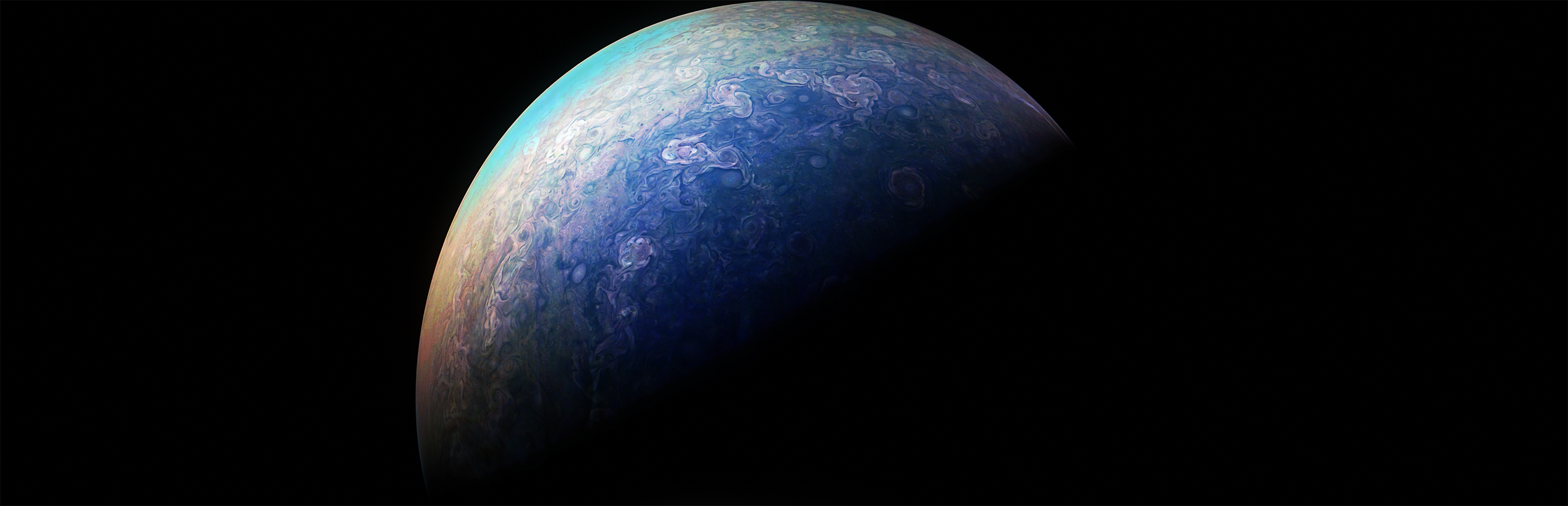 Junocam pixels are 12 bits deep from the camera but are converted to 8 bits inside the instrument using a lossless "companding" table, a process similar to gamma correction, to reduce their size. All Junocam products on the missionjuno website are in this 8-bit form as received on Earth. Scientific users interested in radiometric analysis should use the "RDR" data products archived with the Planetary Data System, which have been converted back to a linear 12-bit scale.