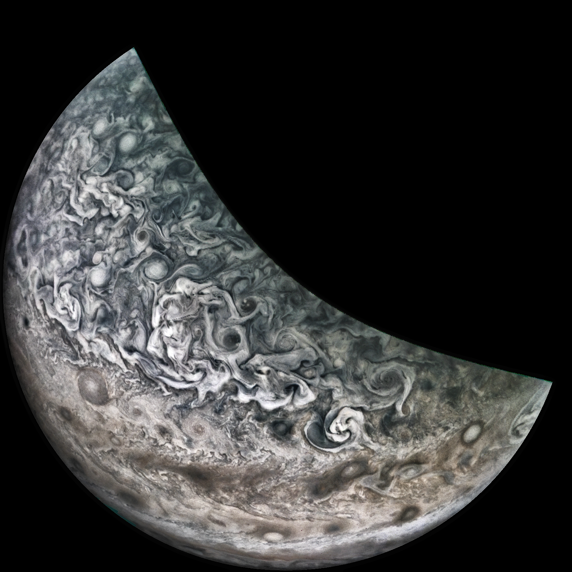 A special note about the Earth Flyby mission phase images: these were acquired in 2013 when Juno flew past Earth. Examples of processed images are shown; most contributions are from amateurs.