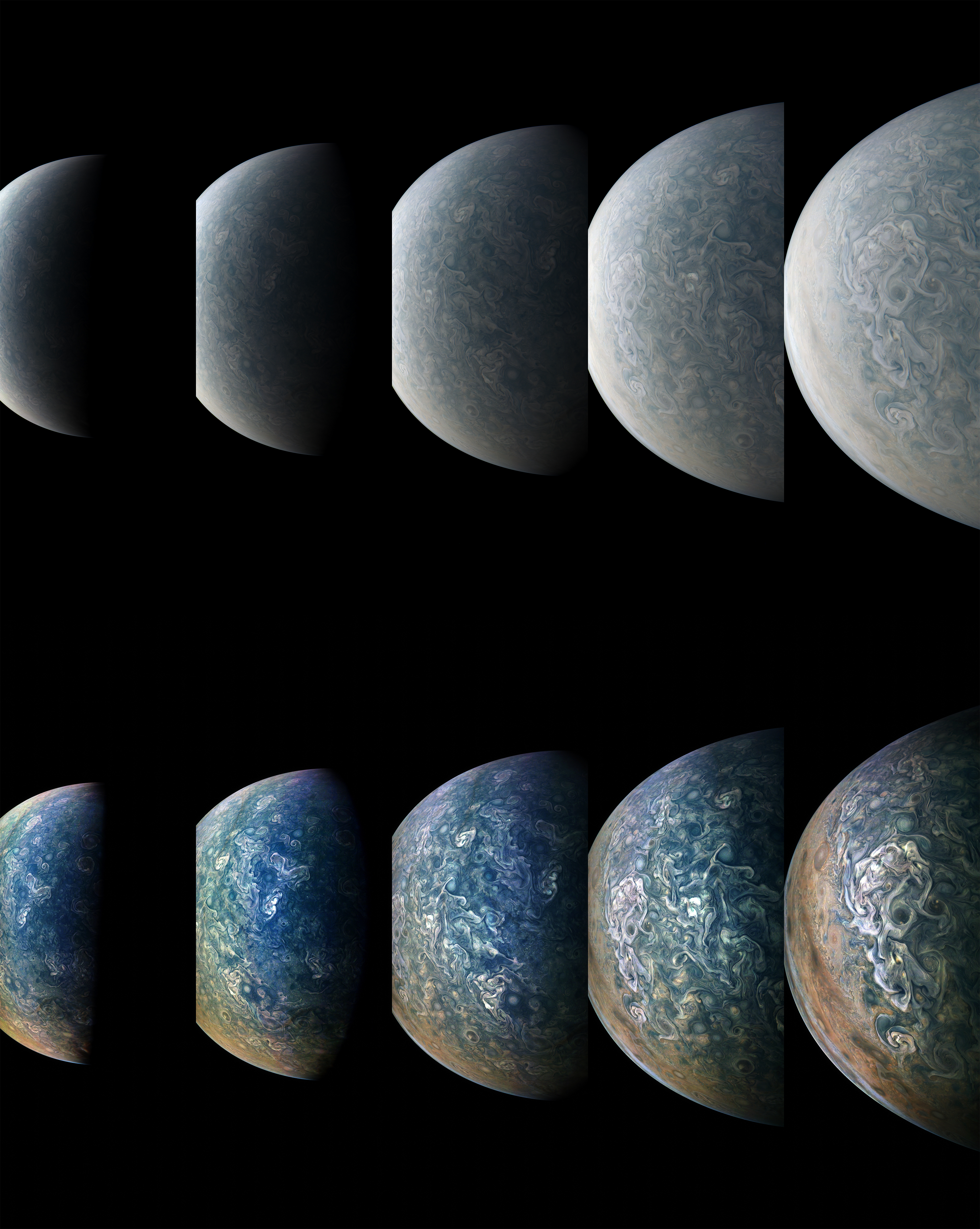 The JunoCam images are identified by a small spacecraft icon. You will see both raw and processed versions of the images as they become available. The JunoCam movie posts have too many images to post individually, so we are making them available for download in batches as zip files.