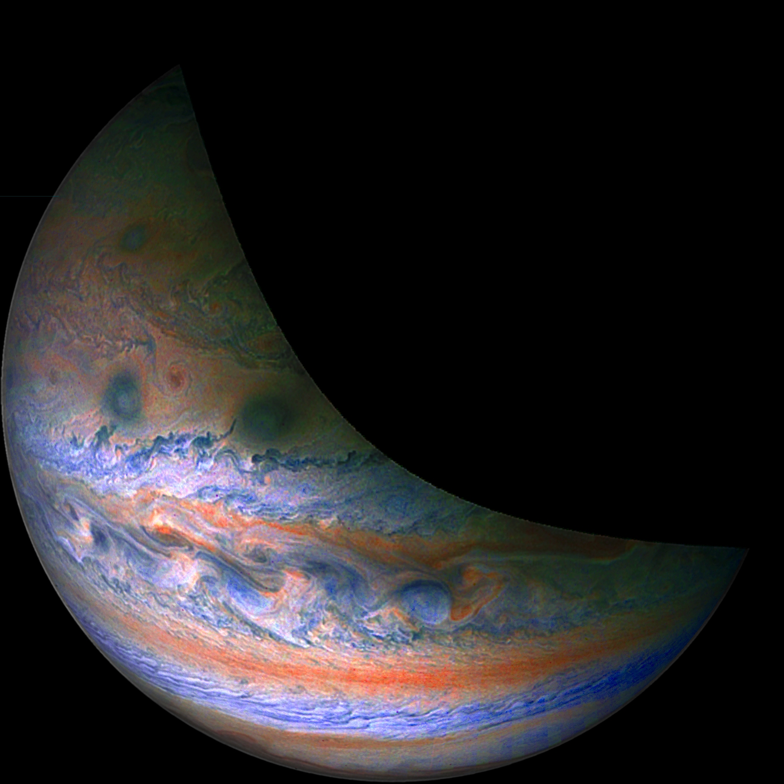 A special note about the Earth Flyby mission phase images: these were acquired in 2013 when Juno flew past Earth. Examples of processed images are shown; most contributions are from amateurs.