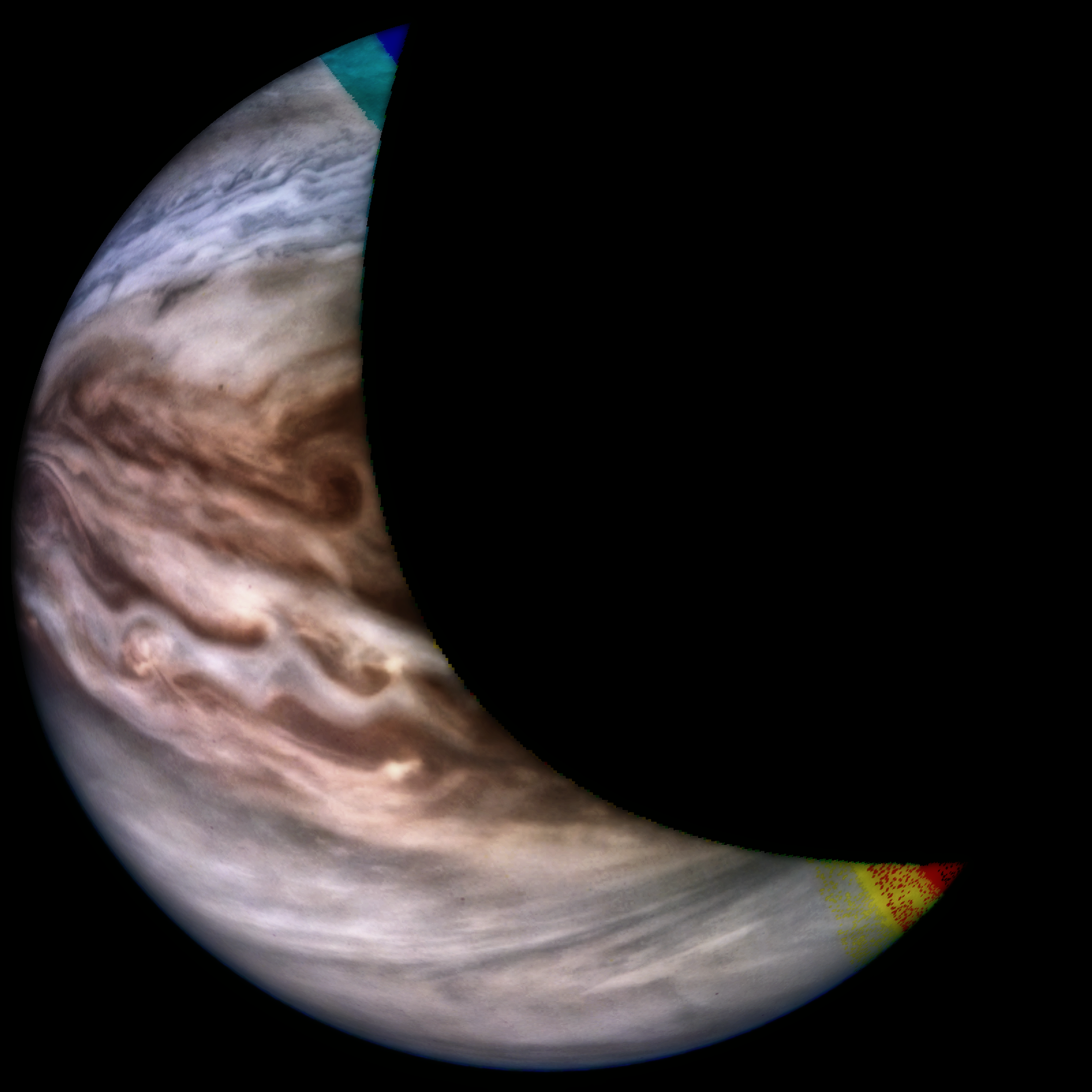 A special note about the Earth Flyby mission phase images: these were acquired in 2013 when Juno flew past Earth. Examples of processed images are shown; most contributions are from amateurs.