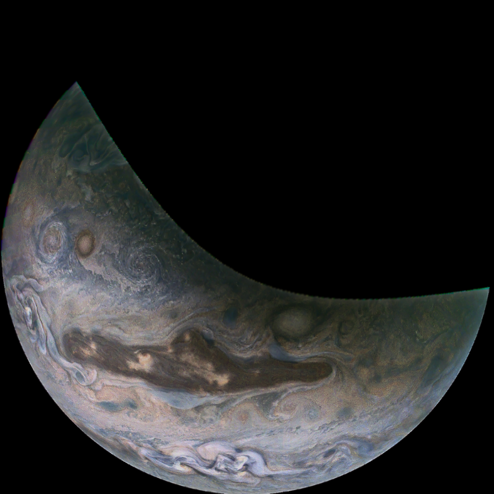A special note about the Earth Flyby mission phase images: these were acquired in 2013 when Juno flew past Earth. Examples of processed images are shown; most contributions are from amateurs.