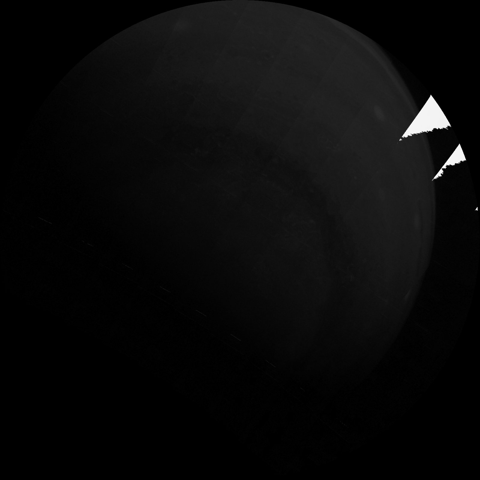 We have a methane filter, included for the polar science investigation, that is almost at the limits of our detector’s wavelength range. To get enough photons for an image we need to use a very long exposure. In some images this results in scattered light in the image. For science purposes we will simply crop out the portions of the image that include this artifact. Work is in progress to determine exactly what conditions cause stray light problems so that this can be minimized for future imaging.