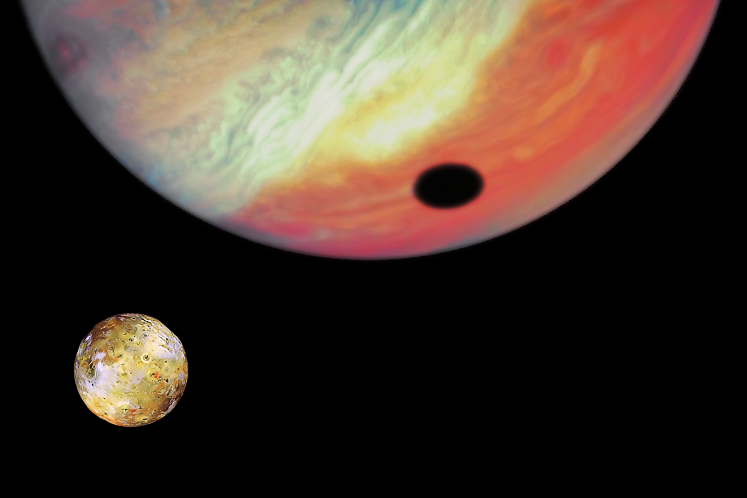 Composite image. Added an image of Io - https://solarsystem.nasa.gov/resources/809/high-resolution-global-view-of-io/?category=moons/jupiter-moons_io - to cropped Juno shadow transit image. A bit of technicolor fun on a grey afternoon in the UK.