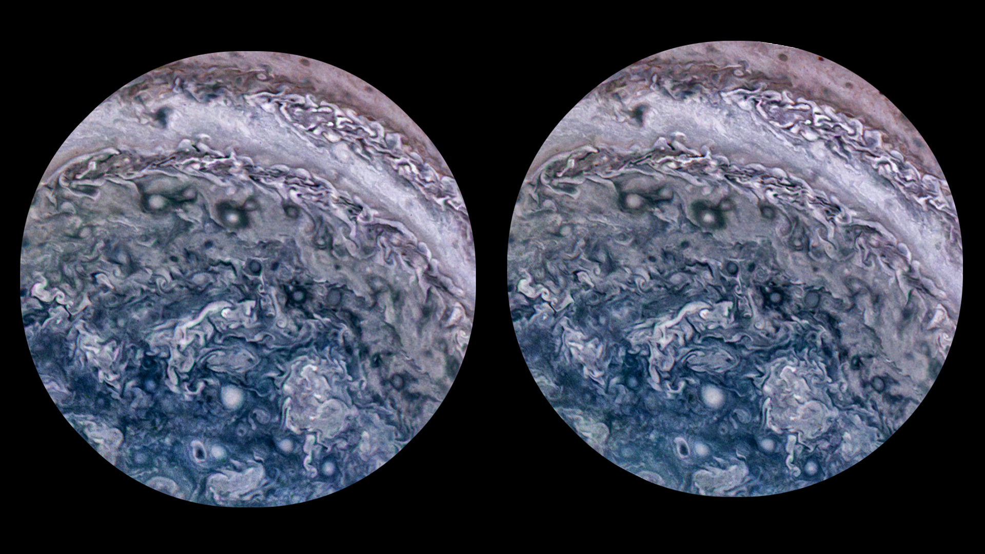 3D Stereograph Near Jupiter's South Pole PJ17 40 & 41 (for Parallel Viewing)