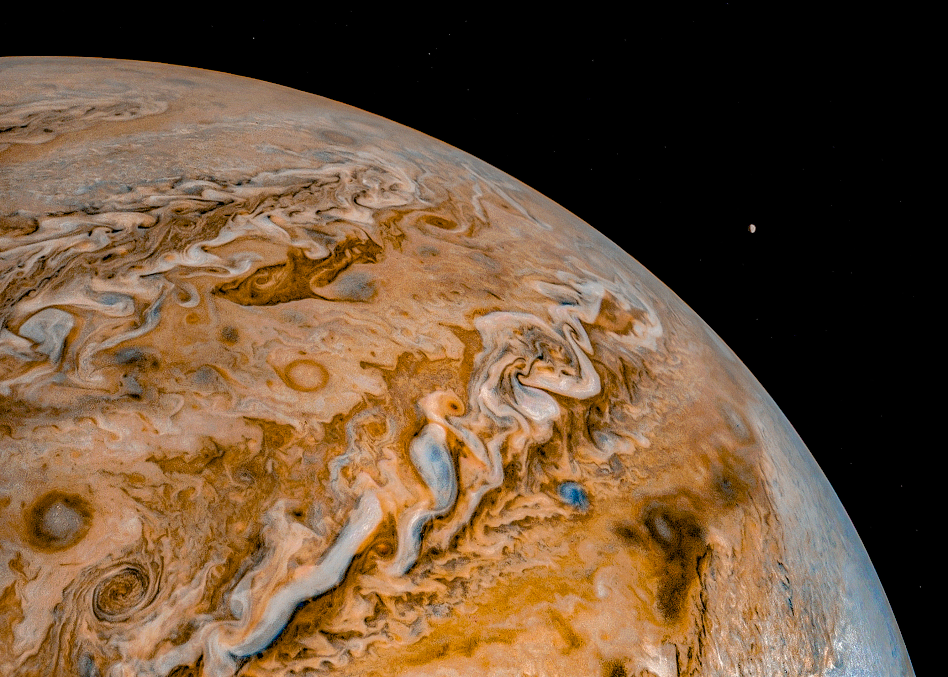A special note about the Earth Flyby mission phase images: these were acquired in 2013 when Juno flew past Earth. Examples of processed images are shown; most contributions are from amateurs.