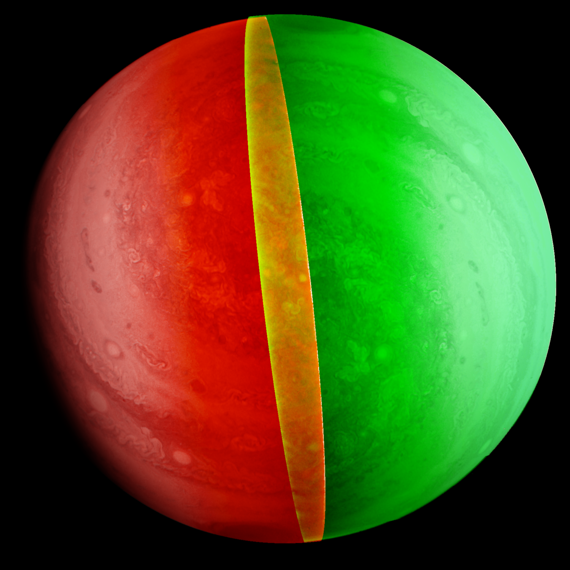exposure) to try to detect Jupiter’s aurora. We imaged at two different geometries, looking directly down at the pole