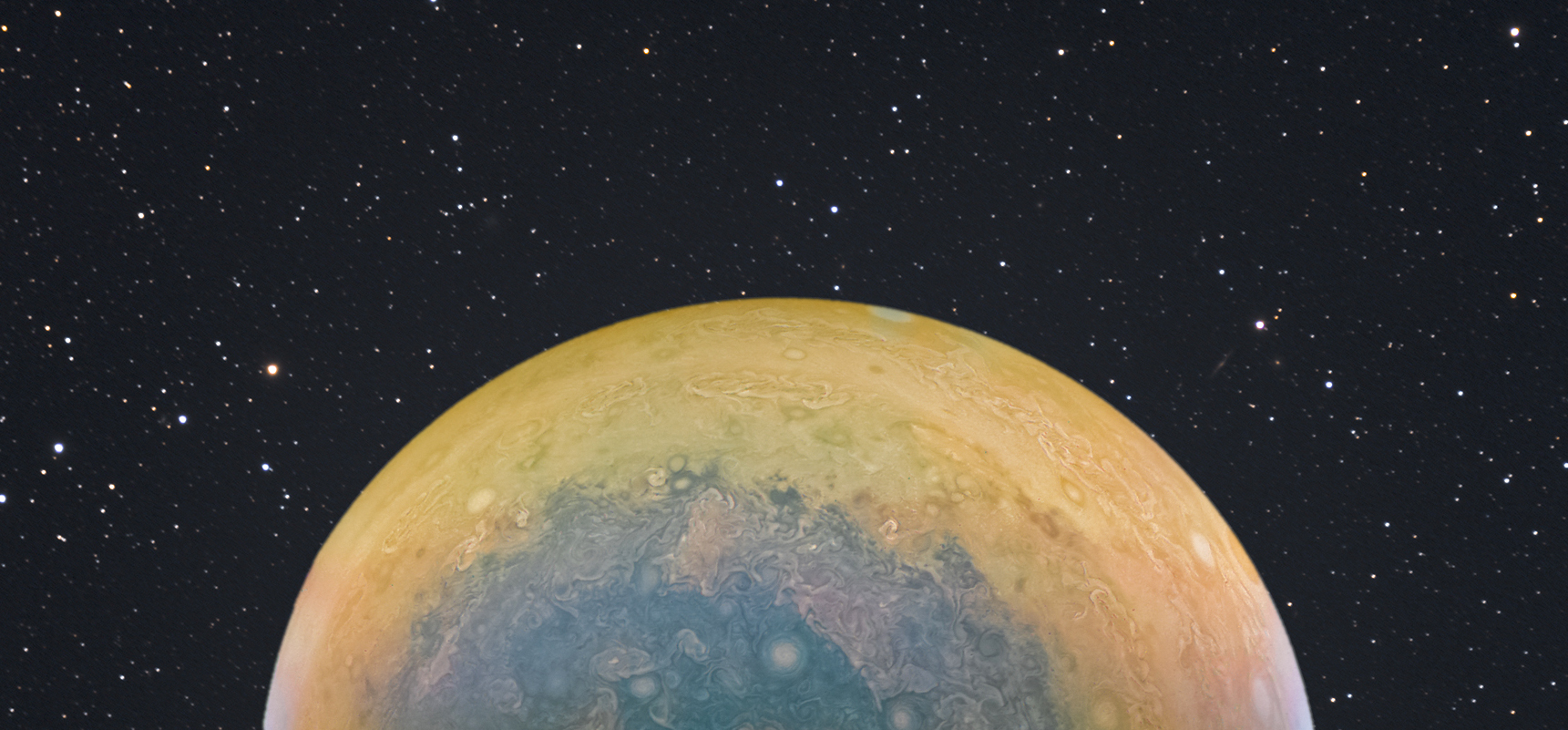 Juno's amazing capture of Jupiter's South pole with a starfield I captured recently.