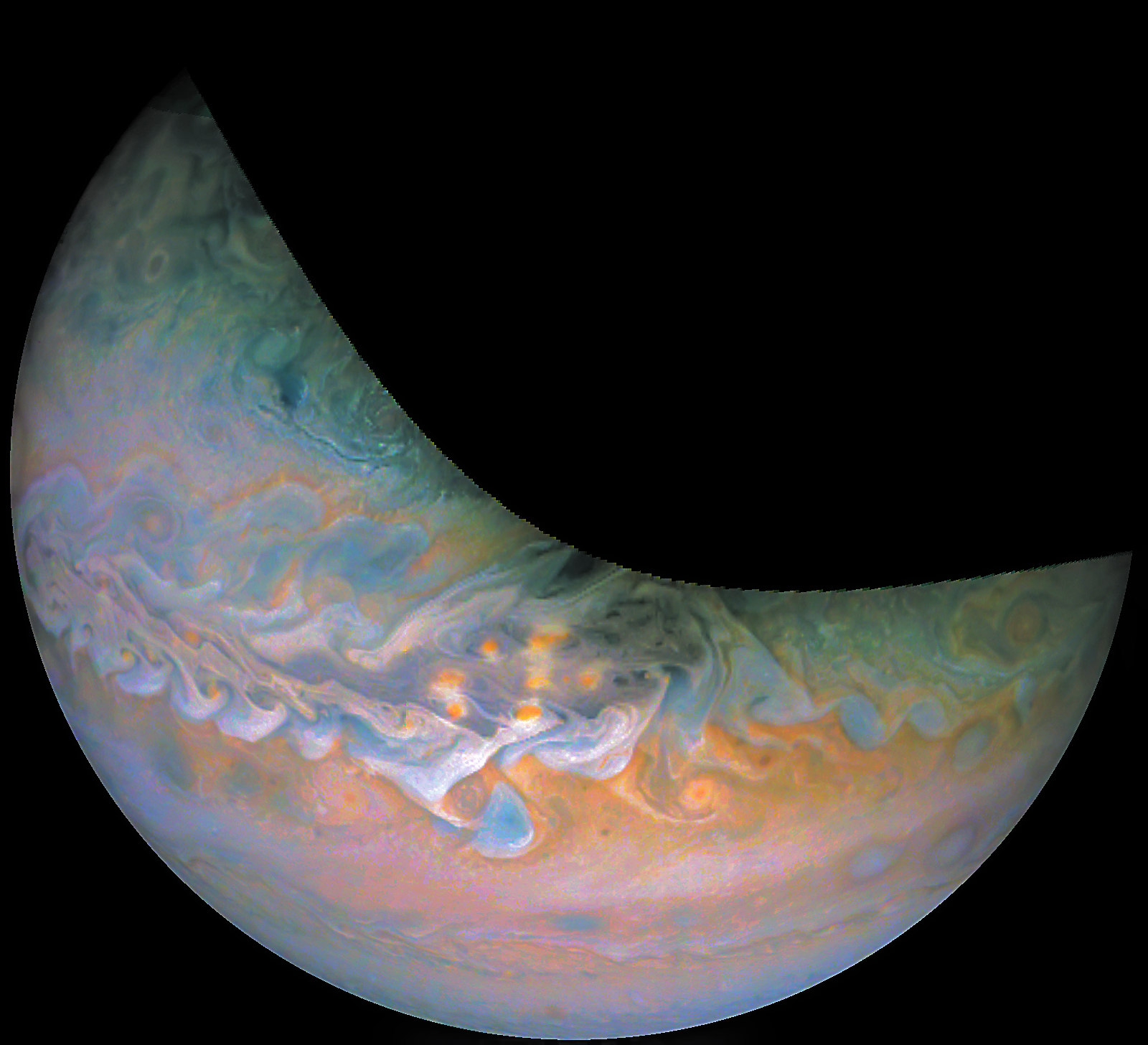 A special note about the Earth Flyby mission phase images: these were acquired in 2013 when Juno flew past Earth. Examples of processed images are shown; most contributions are from amateurs.