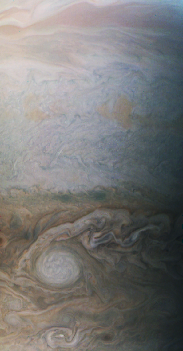 This processed image contains a spot in Jupiters atmosphere Oval BA, nicknamed Red Spot Jr.