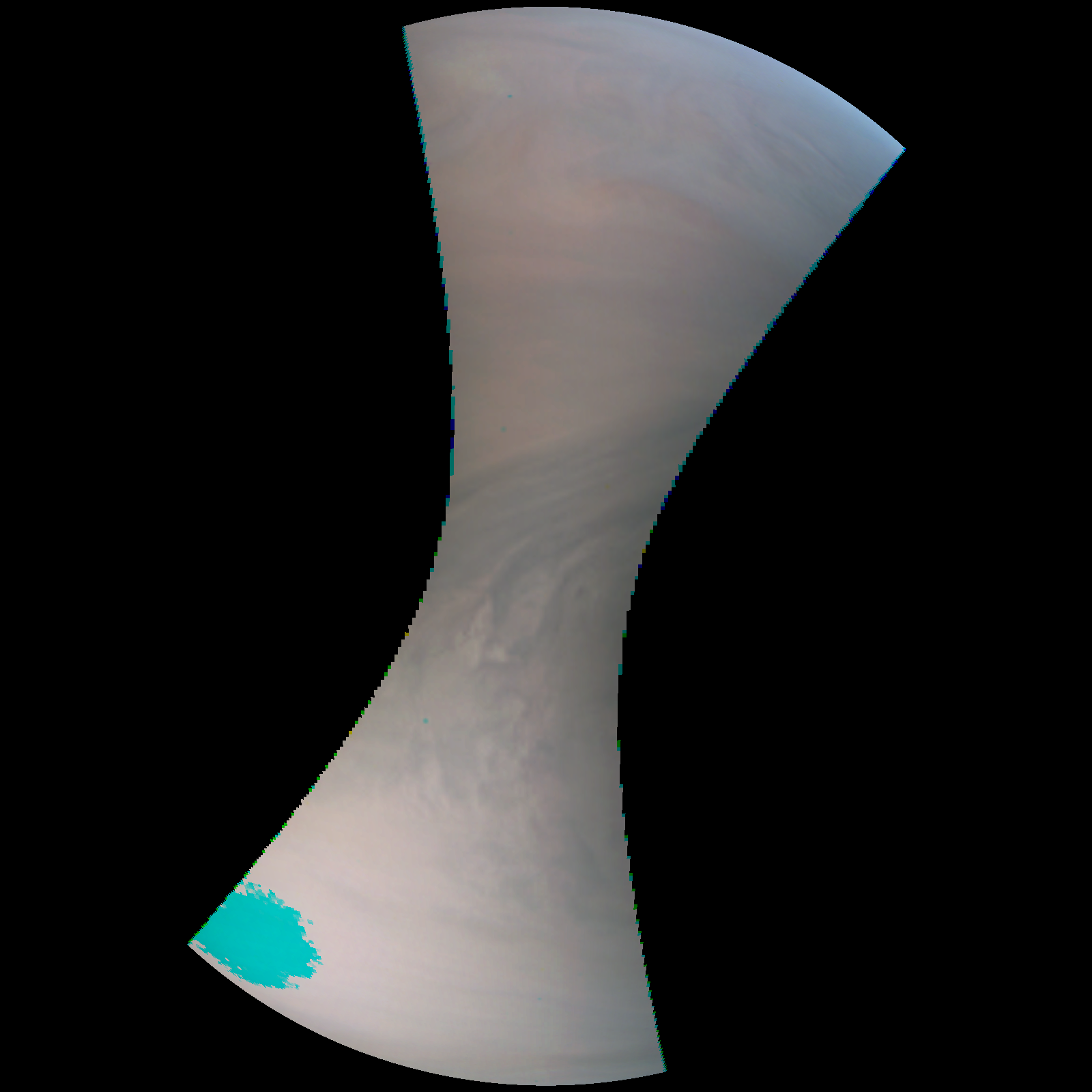 Junocam pixels are 12 bits deep from the camera but are converted to 8 bits inside the instrument using a lossless "companding" table, a process similar to gamma correction, to reduce their size. All Junocam products on the missionjuno website are in this 8-bit form as received on Earth. Scientific users interested in radiometric analysis should use the "RDR" data products archived with the Planetary Data System, which have been converted back to a linear 12-bit scale.