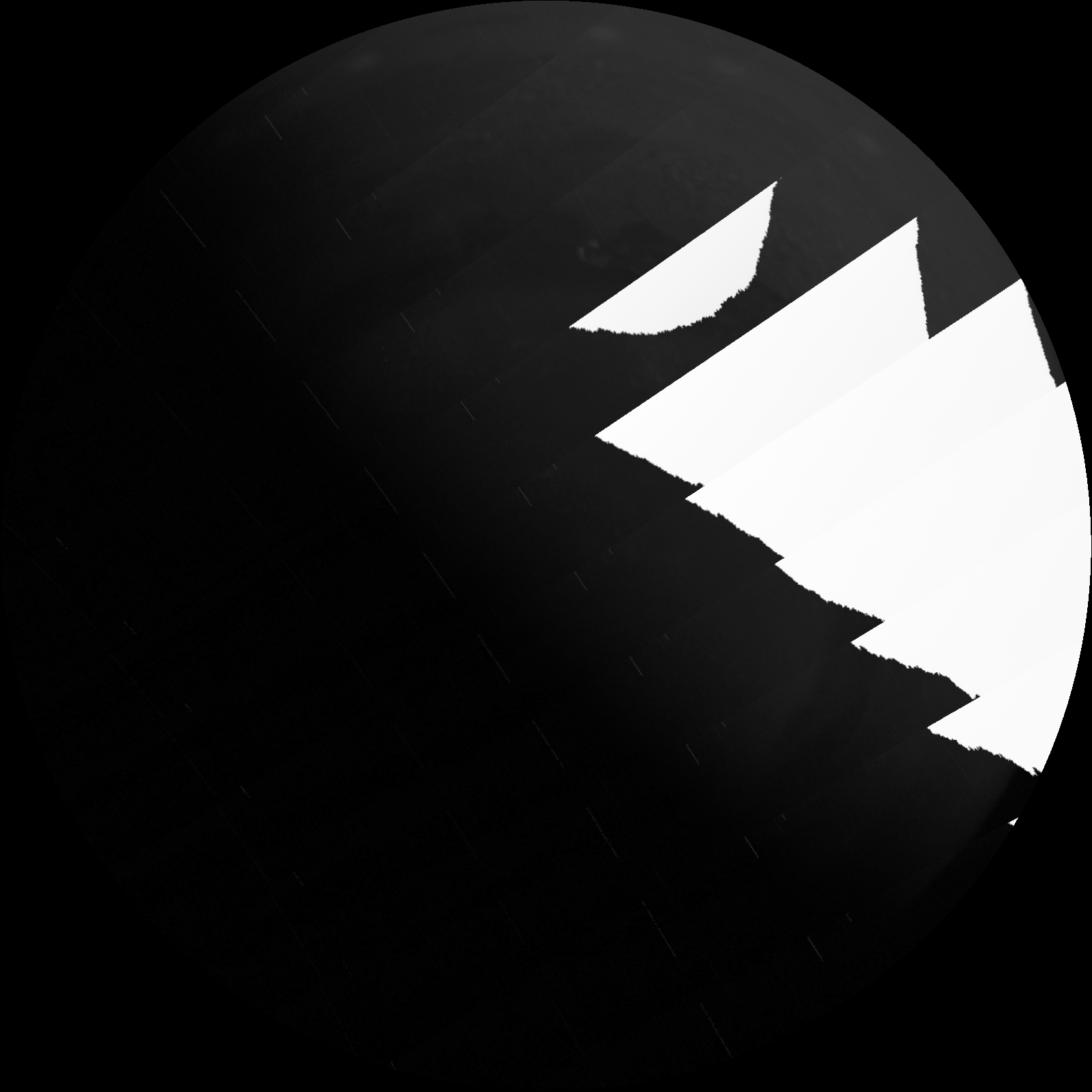 We have a methane filter, included for the polar science investigation, that is almost at the limits of our detector’s wavelength range. To get enough photons for an image we need to use a very long exposure. In some images this results in scattered light in the image. For science purposes we will simply crop out the portions of the image that include this artifact. Work is in progress to determine exactly what conditions cause stray light problems so that this can be minimized for future imaging.